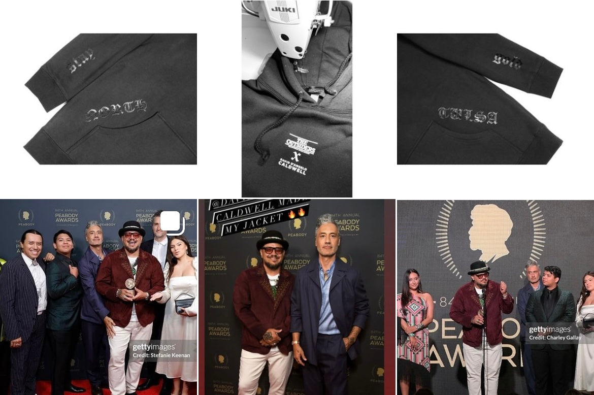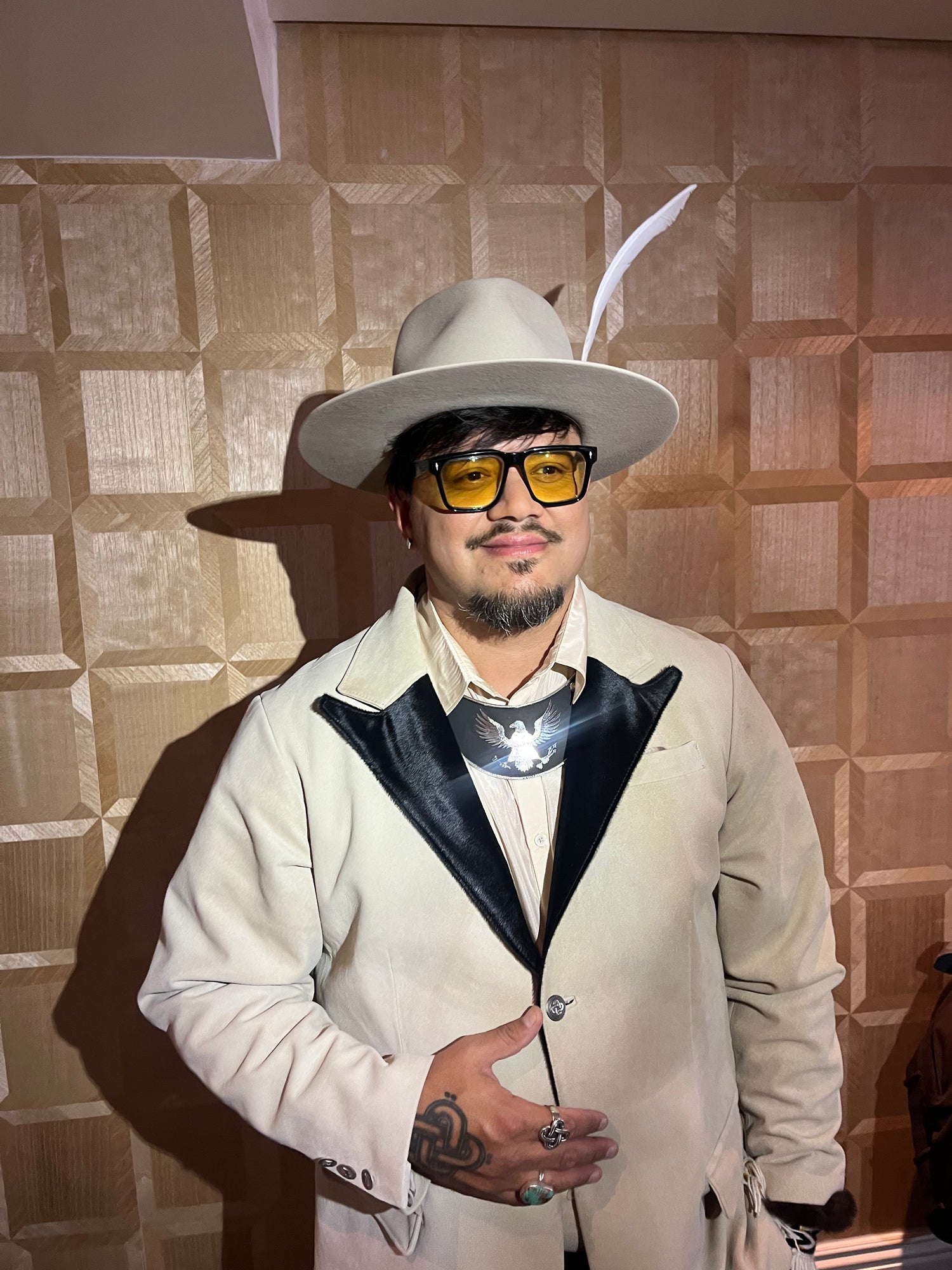 A night on the red carpet called for custom DDC. To meet the moment, we constructed a hand-sewn nappa lamb and calf hair leather tuxedo for Sterin Harjo, co-creator of the Emmy-nominated FX series Reservation Dogs.